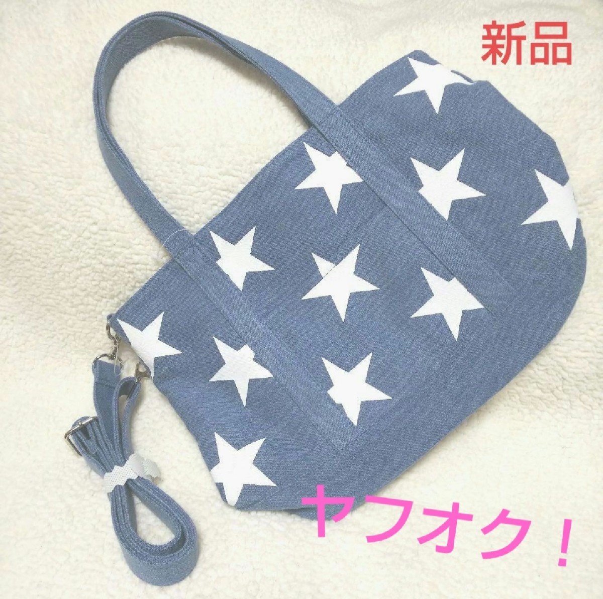 - 星柄2wayトートバック デニム系色【新品・タグ付き】