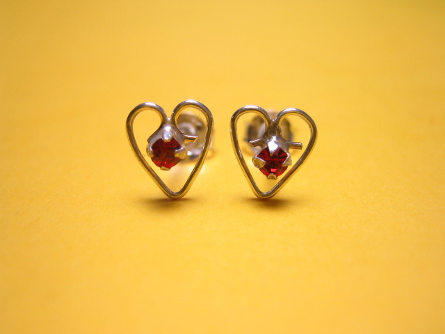 - ◎即決●シルバーピアス ハート 赤 NO.143-1