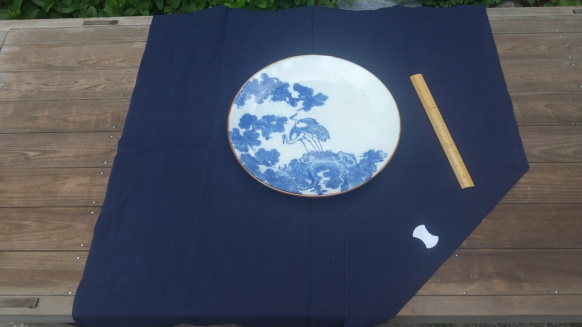 - 明治期 印版手 大皿37㎝ 松に鶴の吉祥図 裏印有り