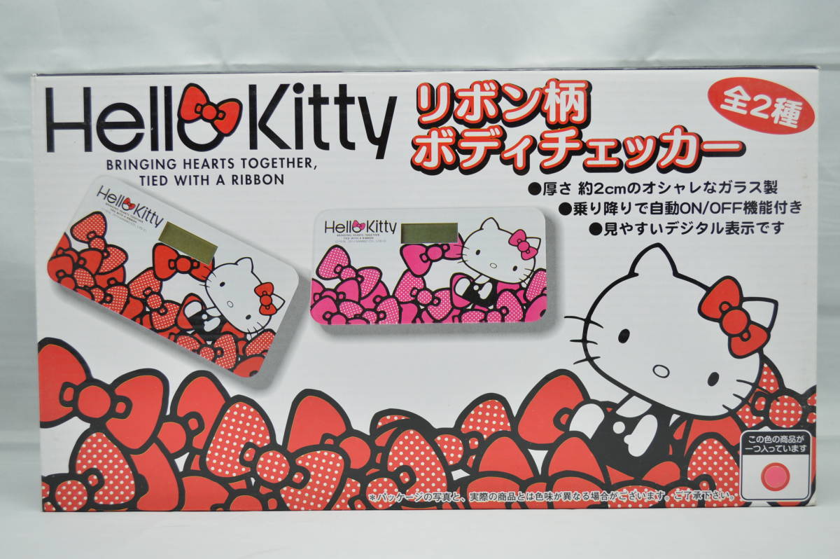 - ハローキティ リボン柄 ボディチェッカー ガラス製 デギタル体重計 ピンク