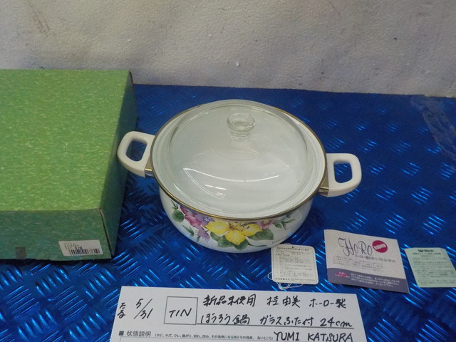 > TIN●〇新品未使用 桂由美 ホーロー製 ほうろう鍋 ガラスふた付 24cm YUMI KATSURA 5-5/31(ま)