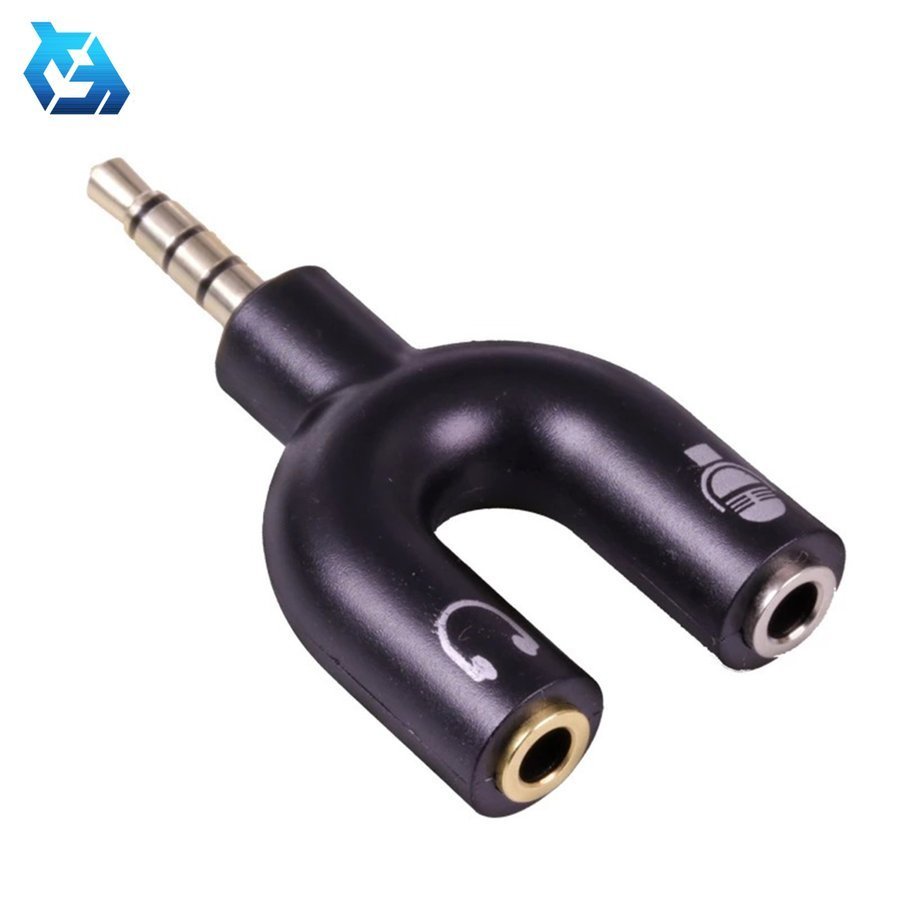 > 3.5mm イヤホン プラグ U型 スプリッタアダプタ ヘッドフォン スピーカー マイク 分割 分配 変換アダプター x1個 【ブラック】