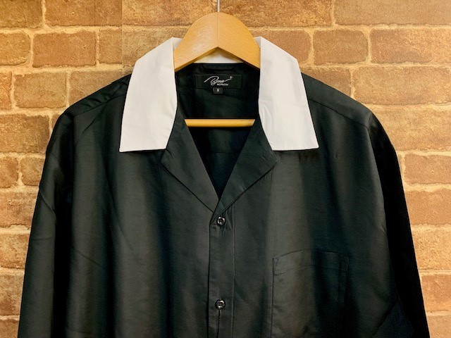 - ★表記M/新品!オーバーサイズ.Beno.クレリックシャツ.半袖.ドレープシャツ.黒白.ポリシャツ.ルード系ロックバイカーヴィンテージスタイル