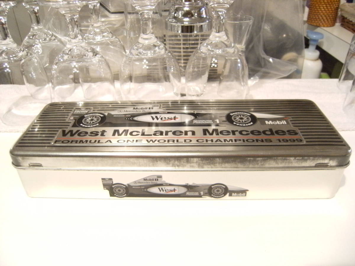 - 当時物 昭和レトロ★90年代★旧車★1999年 F1 マクラーレン メルセデスベンツ 小物入れ カセットケース 缶ケース POTENZA Mobil BOSS