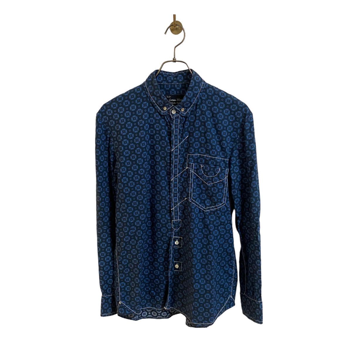 - 【ナンバーナイン NUMBER(N)INE 08AW ポートランド期 長袖シャツ 小紋柄 ブルー 総柄 ボタンダウンシャツ 比翼 メンズ2 ステッチ 刺繍】