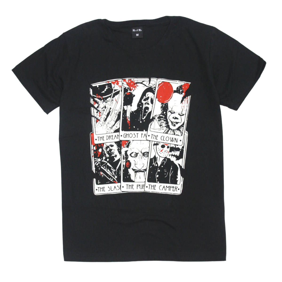 > ホラー映画Tシャツ フレディー ジェイソン ペニーワイズ ハロウィン SAW ビリー人形 おもしろTシャツ メンズ 半袖★tsr0846-blk-xl