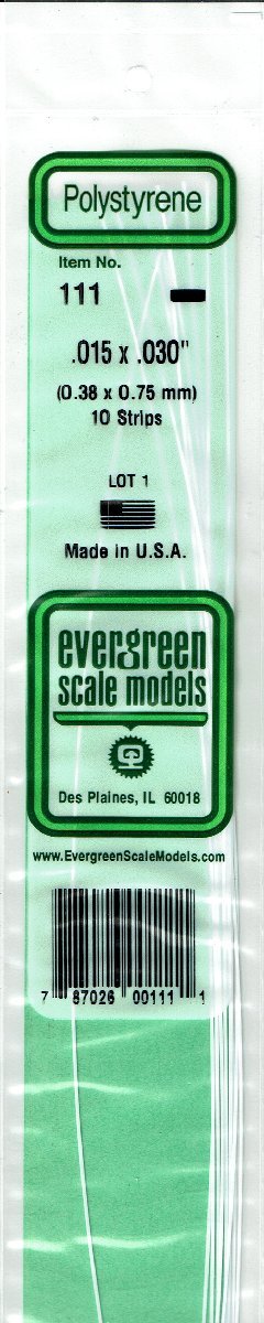 - エバーグリーン .015x.030 プラ棒 0.38x0.75mm 10本入り