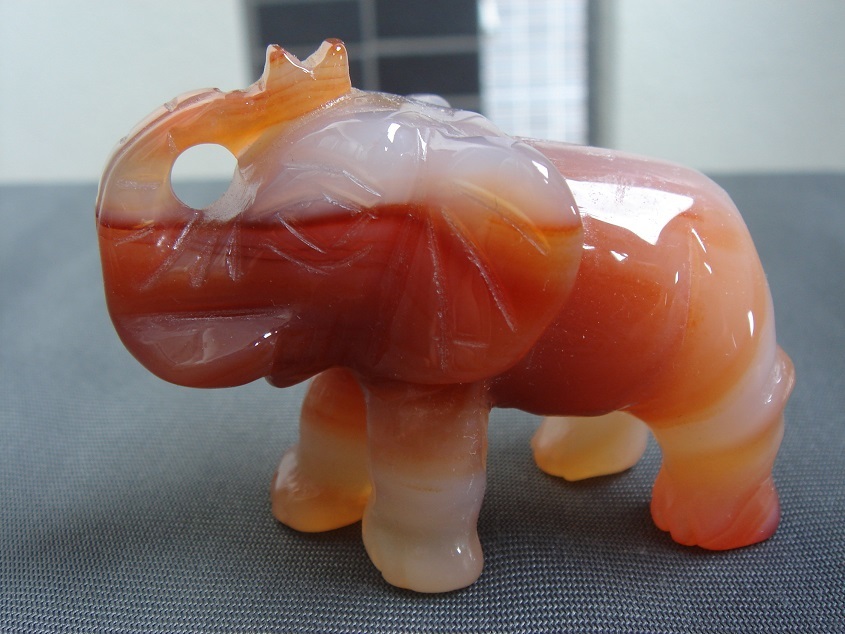 - ☆風水,お守り,天然5A級瑪瑙メノウアゲート象神置物☆大1