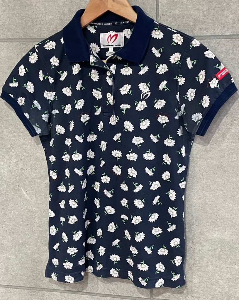 - 夏本番! MASTER BUNNY EDITION マスターバニーパーリーゲイツ 花柄 総柄 ロゴ刺繍 半袖ポロシャツ ネイビー 1サイズ ゆうパケ可 ○ 新規×