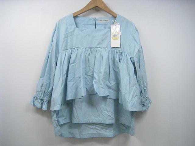 > 新品 MW SUNRISE エムダブリューサンライズ ブラウス 七分袖くらい スクエアネック フリル 水色 ライトブルー サイズF