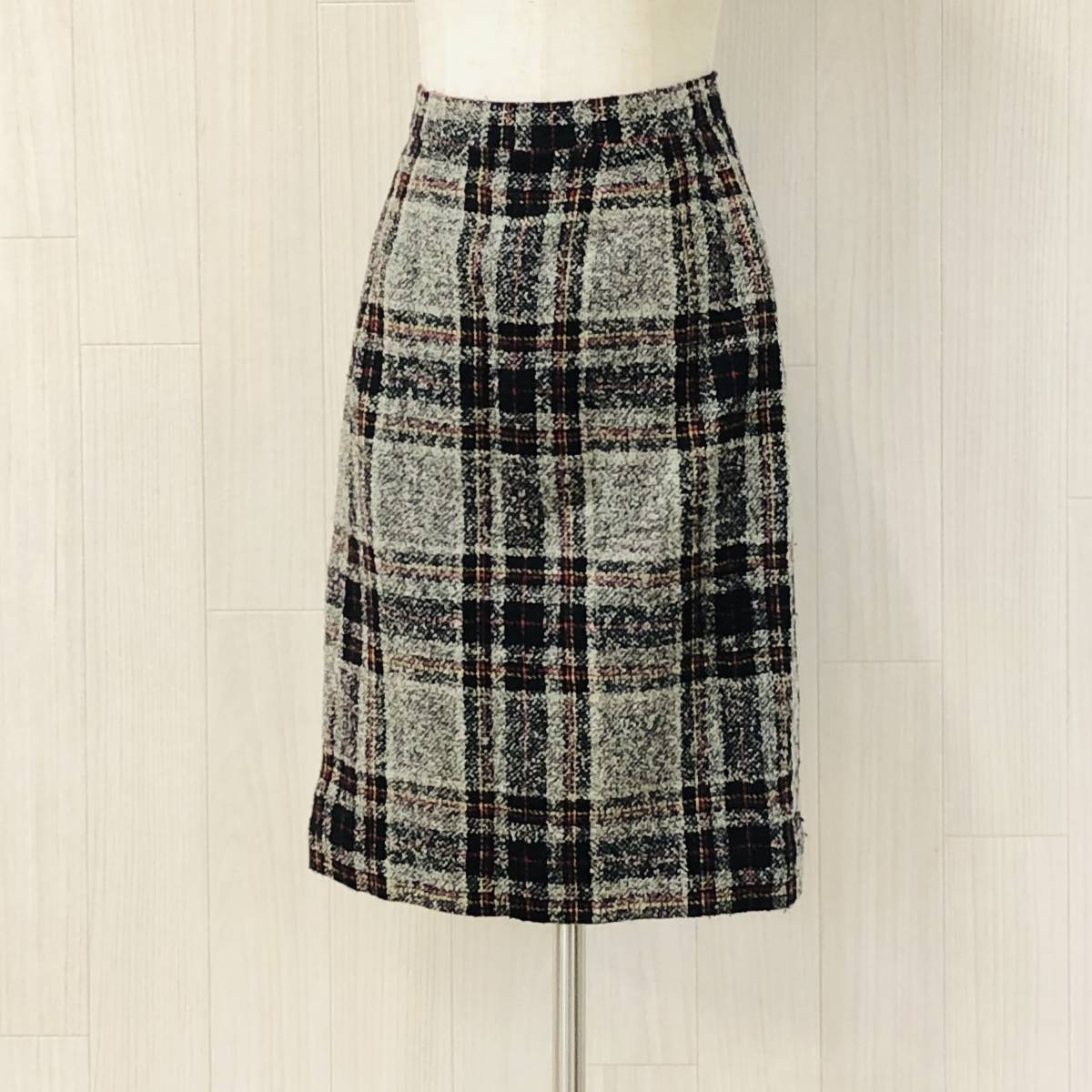 - AS0201 レディース 台形スカート 膝上 クリーニングタグ付き スリット 9号 ブラック 黒 ホワイト 白 チェック 毛 シック 上品 レトロ 冬