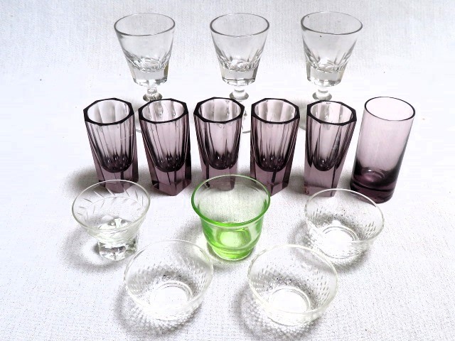 - ガラスグラスなどまとめて14点 猪口 ショットグラス 気泡硝子 アンティーク