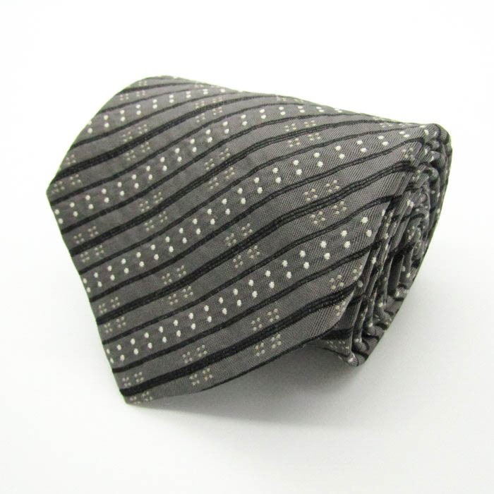 - パルジレリ シルク ストライプ柄 ドット柄 イタリア製 ブランド ネクタイ メンズ グレー 良品 PAL ZILER イタリア高級紳士服ブランド