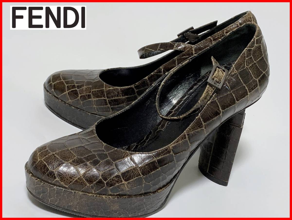 - 即決 FENDI フェンディ 36.5≒23.5cm パンプス 型押し 茶 ブラウン レディース D1