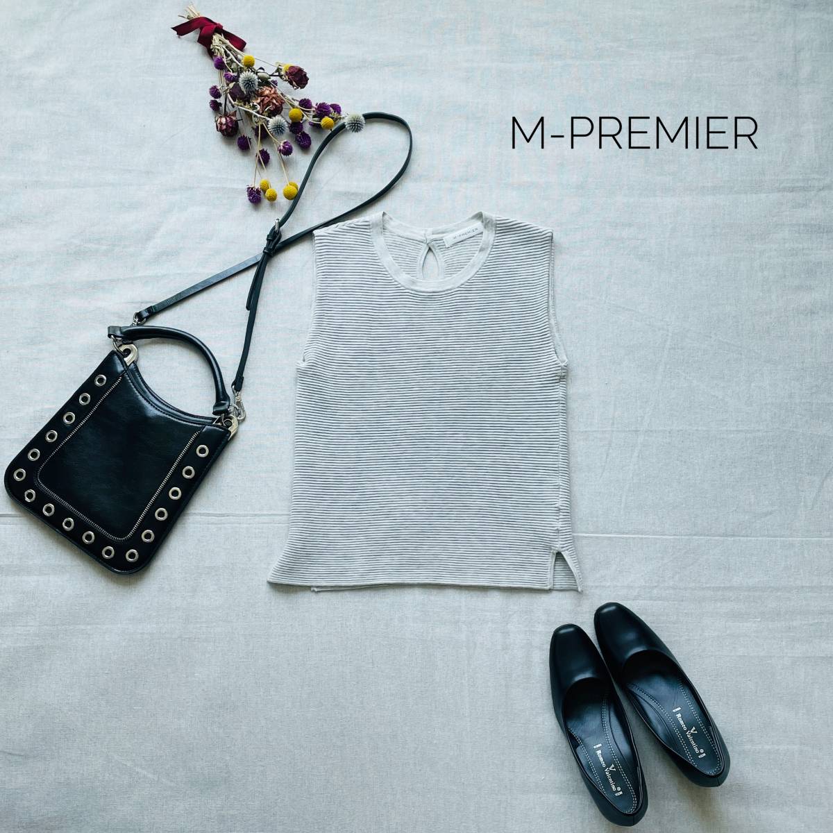 > 美品☆厳選 大人かわいい♪ エムプルミエ ニットノースリーブ ライトグレー 無地 クルーネック タンクトップ こなれ感
