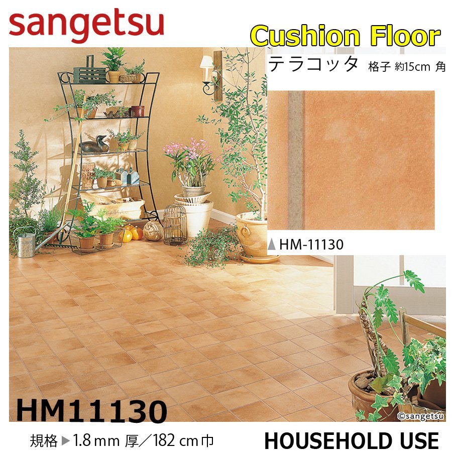 - 【サンゲツ】家庭用クッションフロアHM11130 テラコッタ格子約15㎝角 1.8㎜厚/182㎝巾【住宅用ストーン CF Hフロア(H FLOOR)】【5】