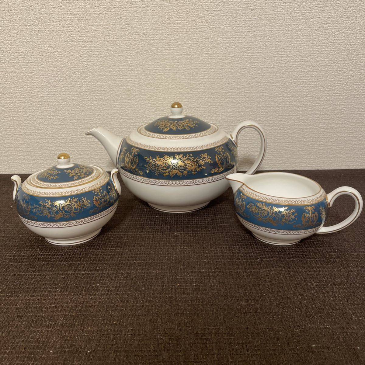 - ウェッジウッド コロンビア ブルー&ゴールド ティーポット シュガーポット クリーマー Lサイズ