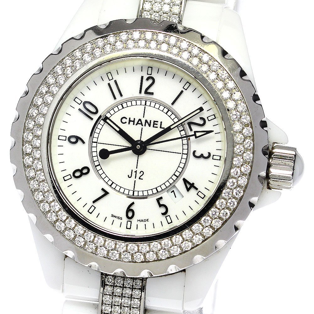 > シャネル CHANEL H1420 J12 白セラミック ダイヤベゼル ブレスレットダイヤ クォーツ レディース _761304