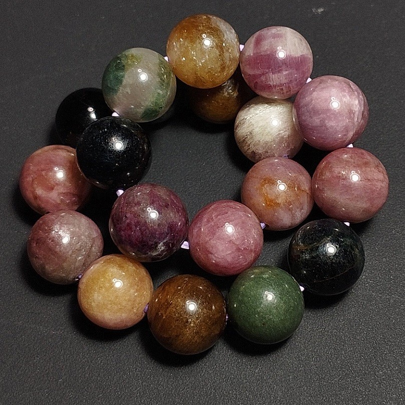 - ミックストルマリン ブレスレット 10.5mm 17cm 電気石 ミックスカラー
