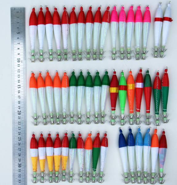 - 送料無料 イカ釣り 仕掛け 夜光 浮きスッテ 4号/3号 50本 お買い得 セット 訳有 未使用品 wkST50RD-2