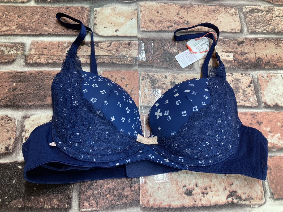 - 送料無料!大人気ブランド!【トリンプ】ノンワイヤーお洒落なレース付きブラジャー(ネイビー小花柄)1枚