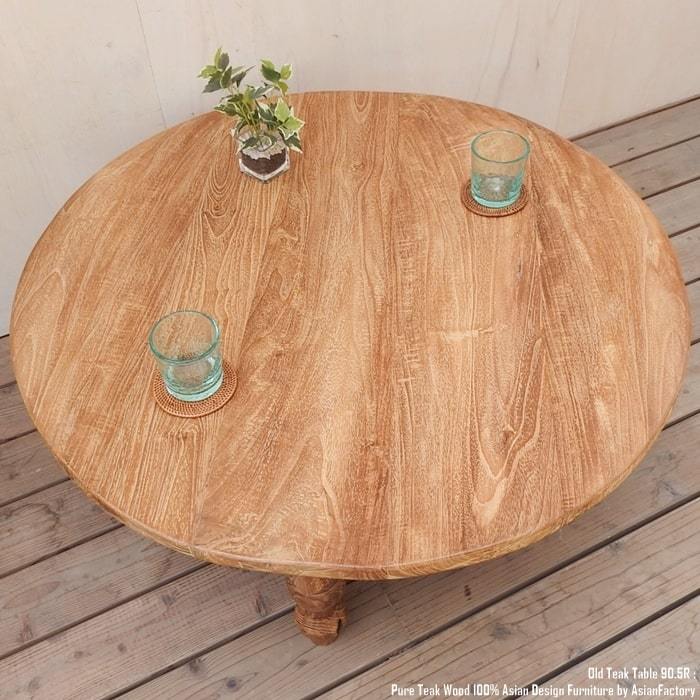 - ダイニングテーブル 90.5cm オールドチーク 円卓 ローテーブル センターテーブル ラウンドテーブル 無垢材 アジアン家具