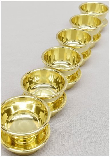- 密教法具 六器 極上品 中サイズ 口径6.8cm 真鍮製 ミガキ仕上げ