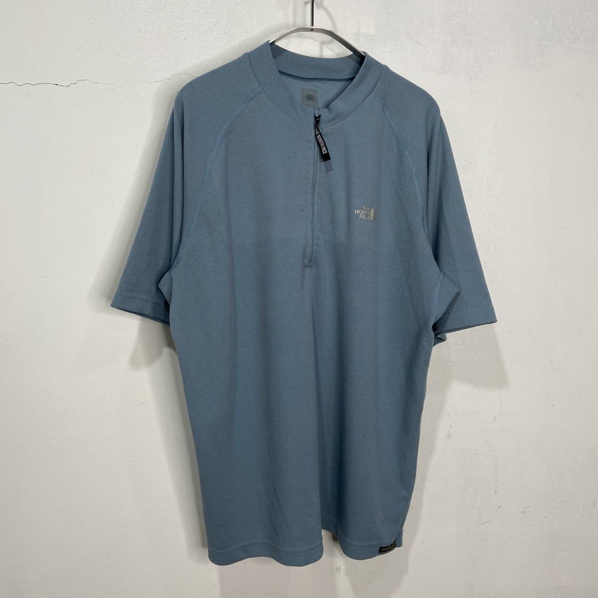 - 送料無料☆THE NORTH FACE☆ノースフェイス☆ハーフジップ半袖カットソー☆半袖Tシャツ☆ワンポイントロゴ☆サックス☆L☆G23