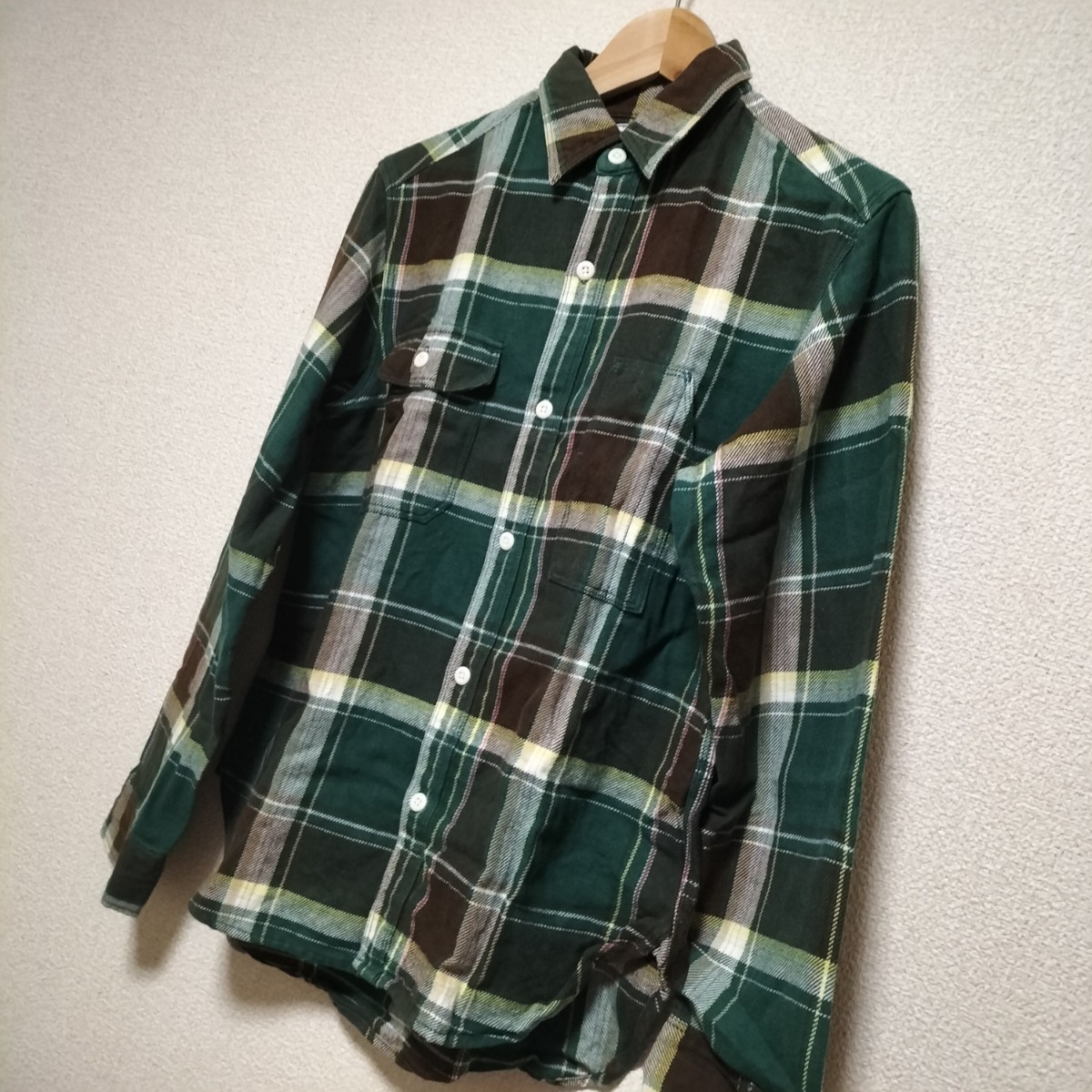 - 希少★SUNNY SPORTS チェック柄シャツ ワーク サーフ 麻 綿 リネン コットン グリーン 茶 サイズ36 長袖 サニースポーツ ブランド古着 USED