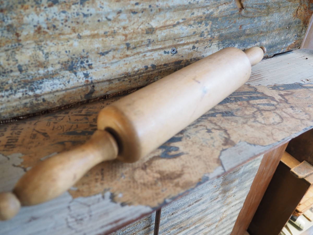 - 【フランス蚤の市生地のし棒】木製パスタケーキ洋菓子ローラー古道具アンティーク骨董インテリア麺棒インダストリアルケーキ屋