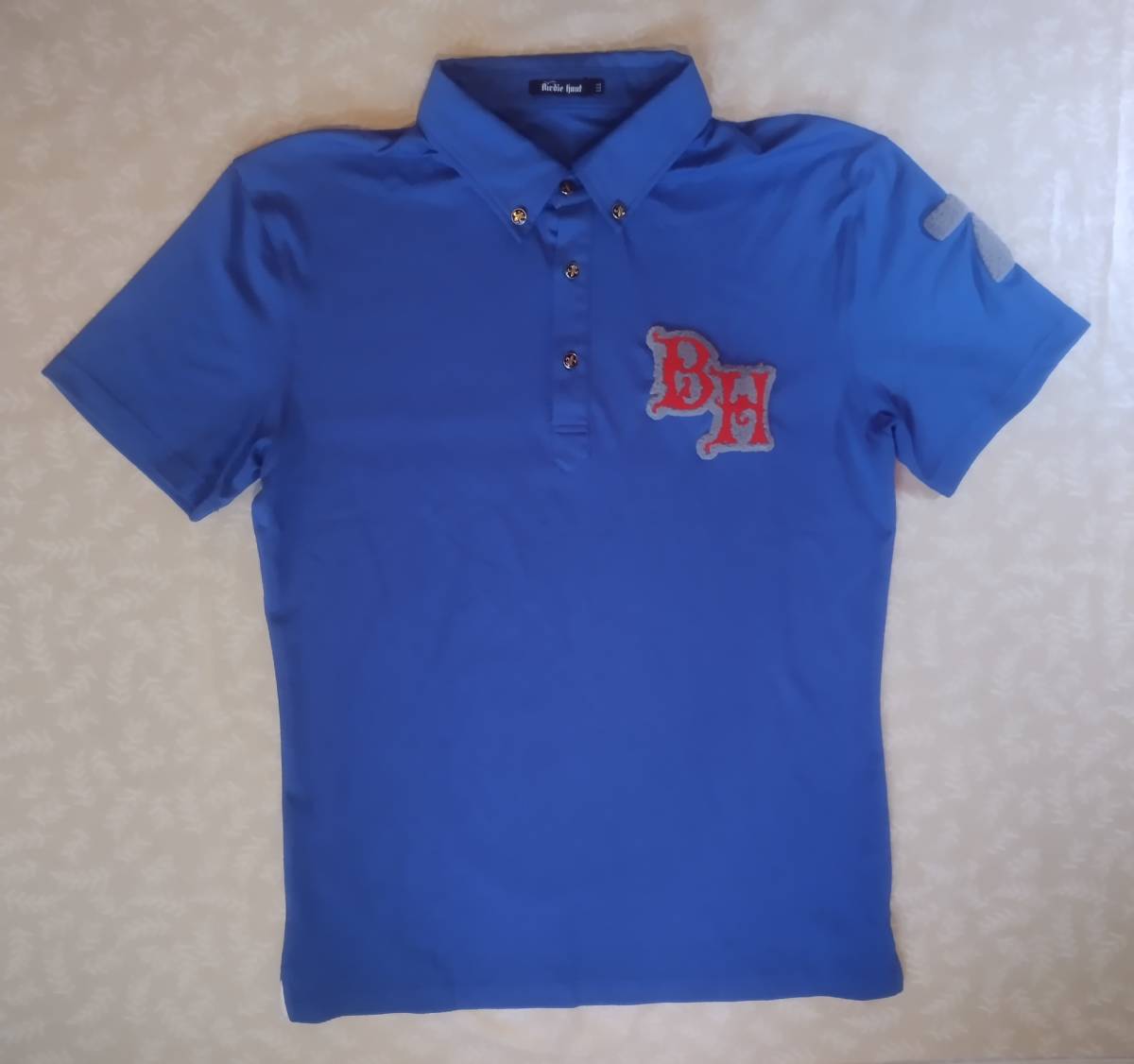 > 美品! バーディーハント 半袖シャツ サイズ3L(小さめLL相当) ブルーⅹ同色メッシュ ストレッチ 速乾薄手生地 カッコイイ!