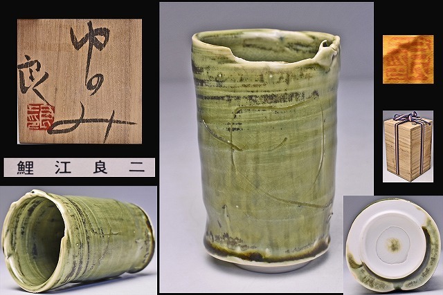 > 鯉江良二 ★ 織部 湯呑 ★ 共箱 共布 栞 ★ 常滑焼の鬼才 ★ 独特の造形美が美しい毎日楽しめる逸品 ★ 検 中島勝乃利