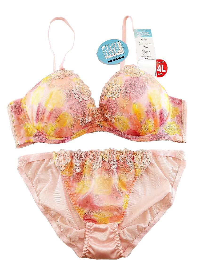 > SI7739◆ 新品 プリント ロマンティック ブラジャー・ ショーツセット ストラップ調節可 カップ刺繍 前刺繍 4Lサイズ ピンク系 送料350円