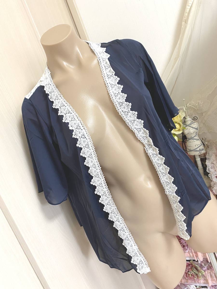 - レディス水着9M:ミューラーン【PEAK&PINE】日本製◆レースライン水着ラッシュガードカーディガン:ネイビー 定価:7,000税