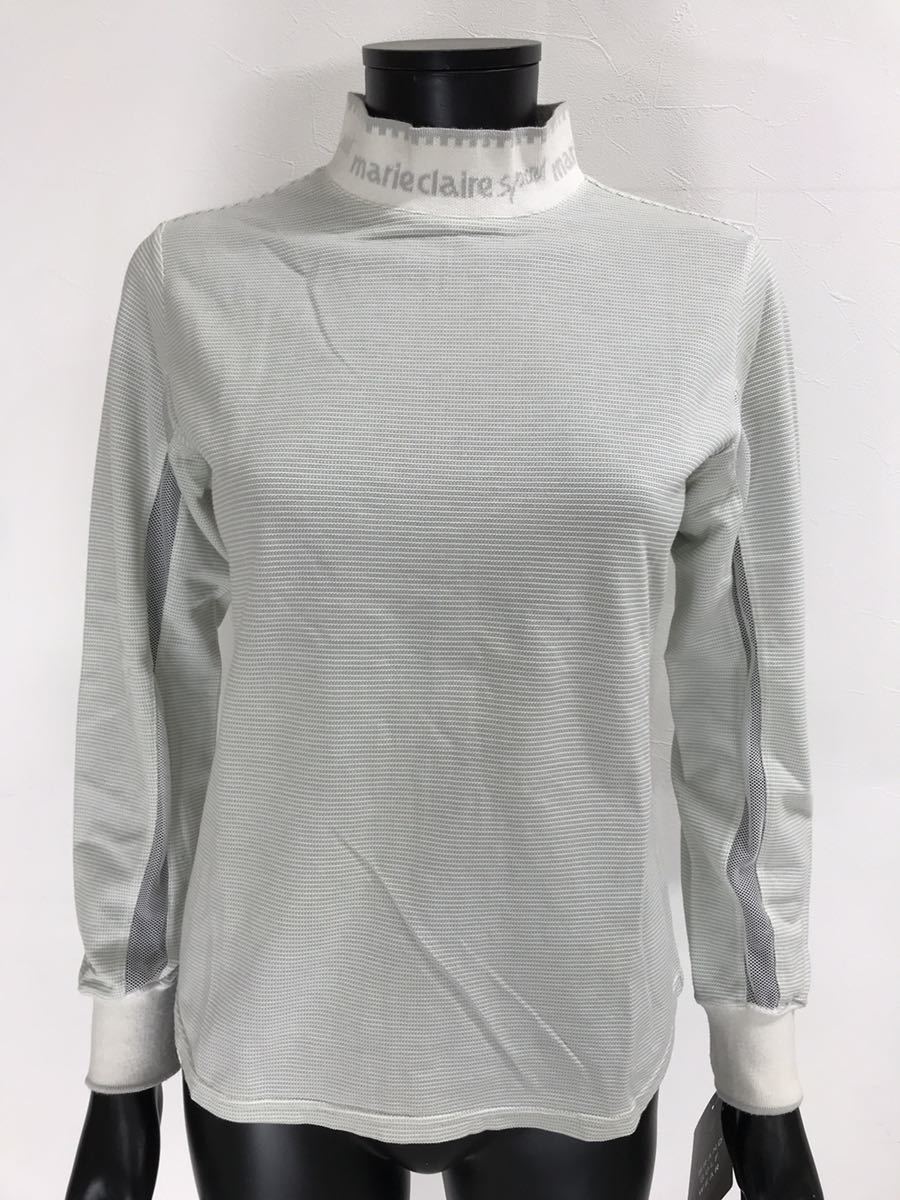 > 【USED】marie claire マリクレール 綿 ハイネック 長袖 シャツ メッシュ グリーン系 緑 レディース M ゴルフウェア
