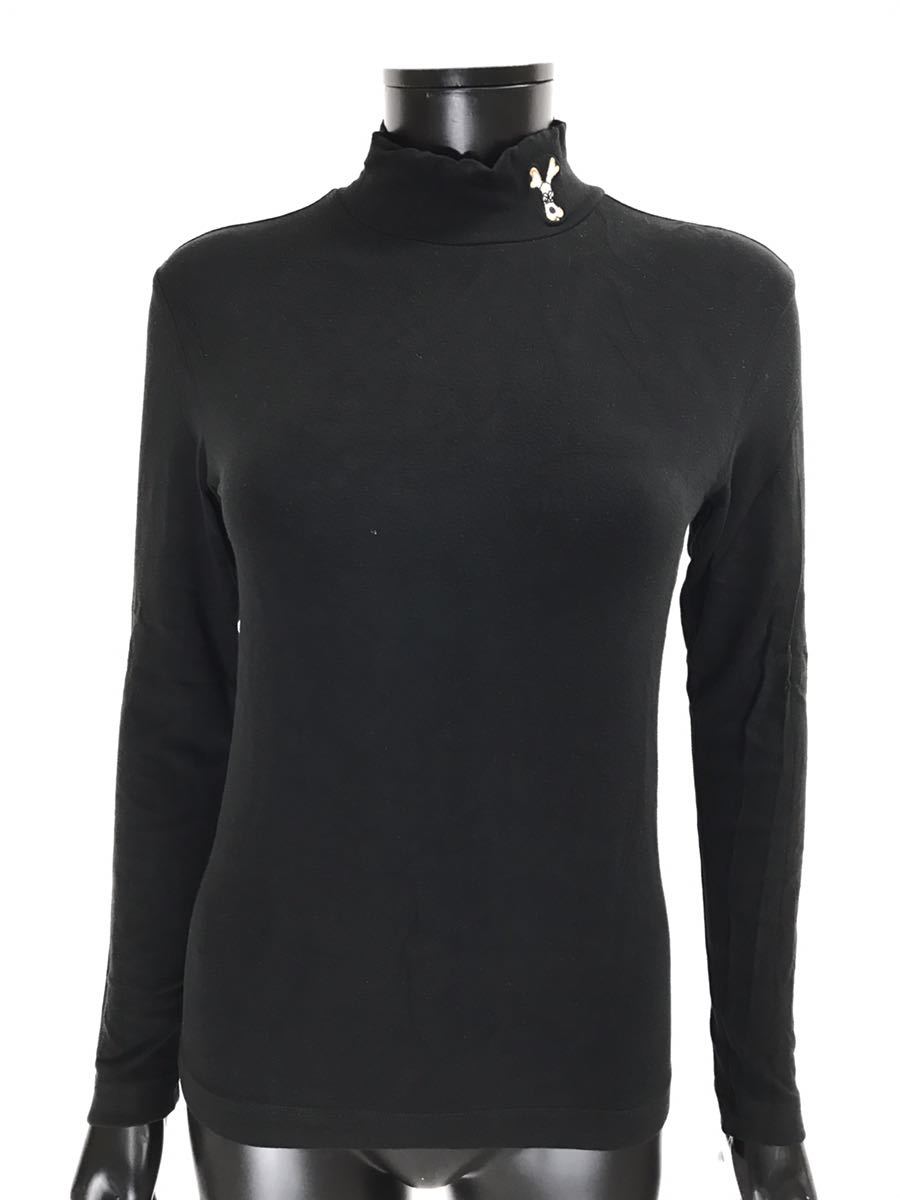 - 【USED】M.U SPORTS エムユースポーツ ミエコウエサコ ハイネック 長袖 シャツ 刺繍 ブラック 黒 レディース 40 ゴルフウェア