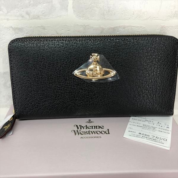 - Vivienne Westwood ヴィヴィアンウエストウッド 【2】箱付 EXECUTIVE 牛革 レザー ラウンドファスナー 長財布 ブラック LH632023082802