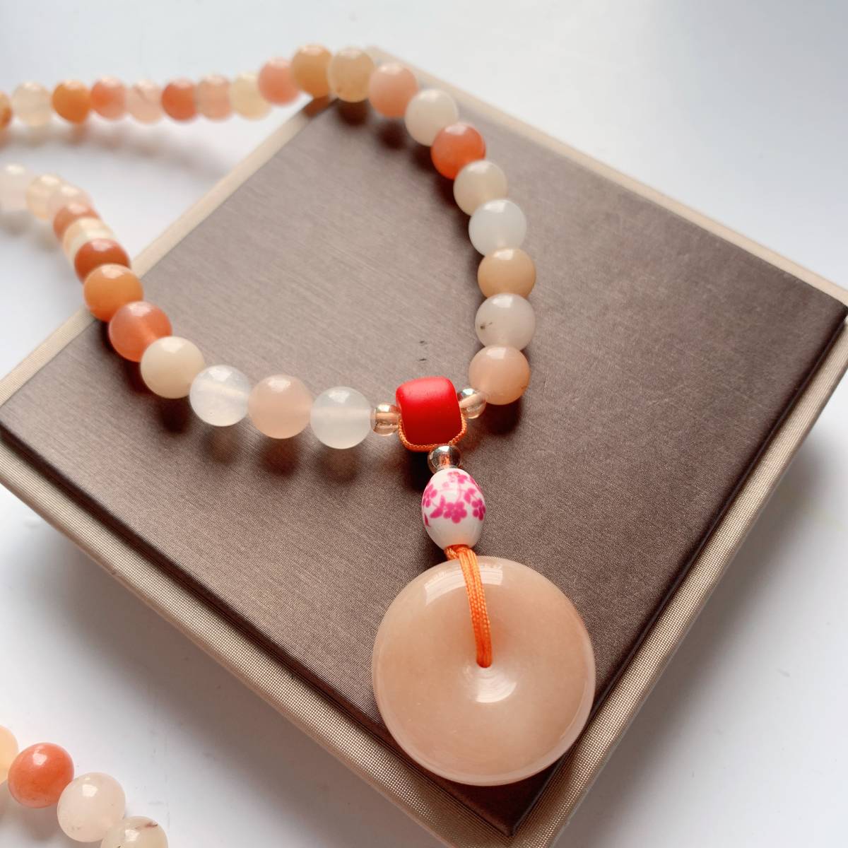 > ◇金糸玉◇ヒスイ◇ネックレス◇ペンダント◇ドーナツ型◇平安扣◇お守り◇天然石◇パワーストーン◇巾着袋付き018P8282