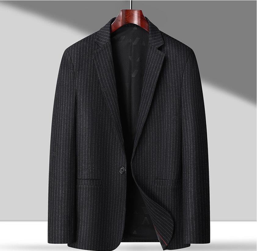 - メンズ テーラードジャケット ストライプ ビジネススーツ スーツジャケット 春秋服 ブレザー ブルゾン ストレッチ 大きいサイズ 黒 2XL~8XL
