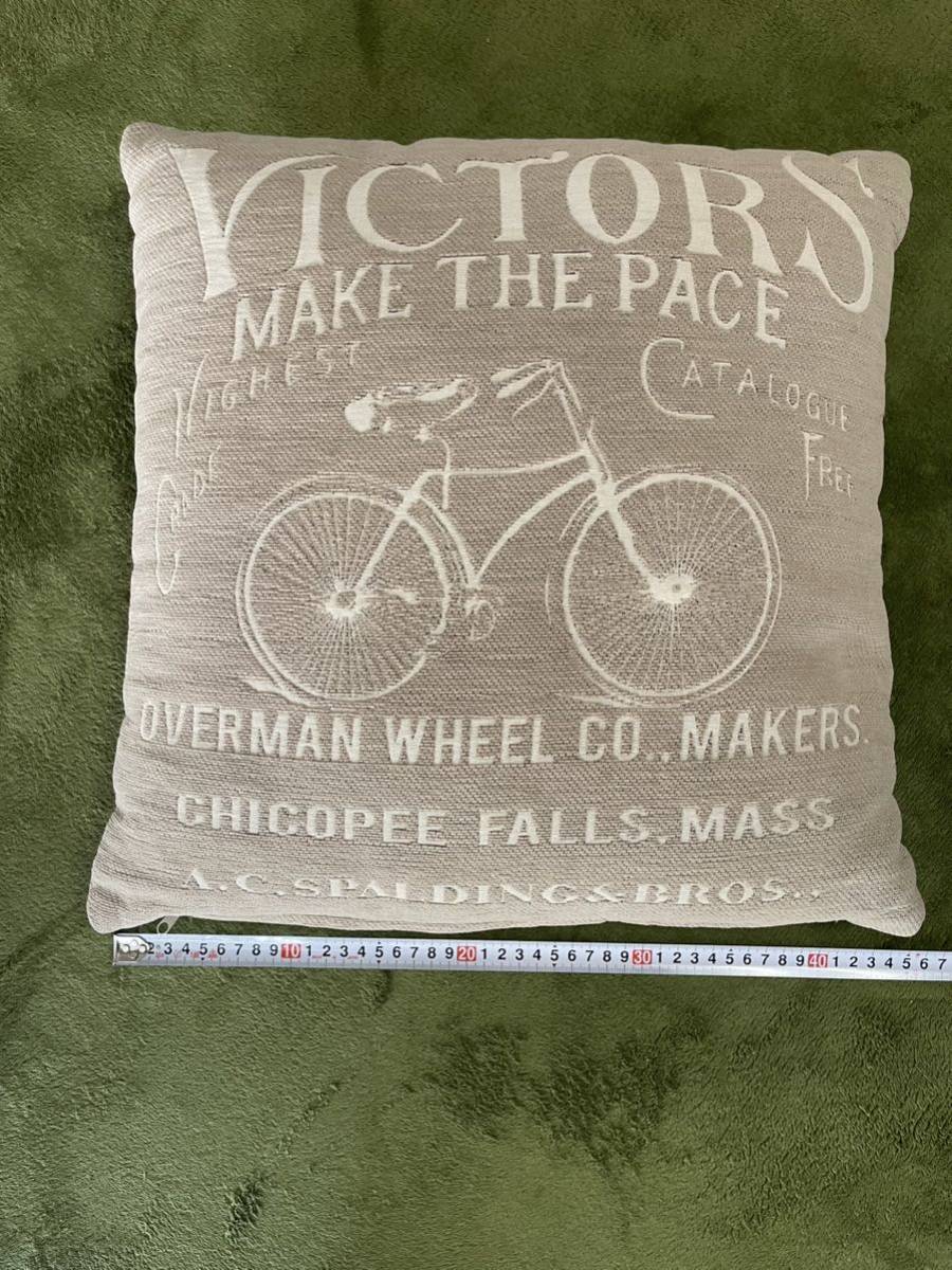 - クッション おしゃれ ヴィンテージ デザイン 自転車の絵柄 VICTORS make the pace 中古 美品 リビング 寝室 車などに!
