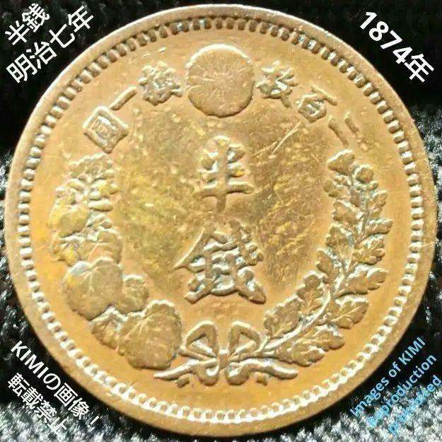 > 半銭銅貨 明治7年 1874年 直径22.1mm 1/2SEN 大日本 貨幣芸術 古銭 硬貨 コイン 貨幣 Half-size copper coin, 1874, diameter 22.1mm 1/2