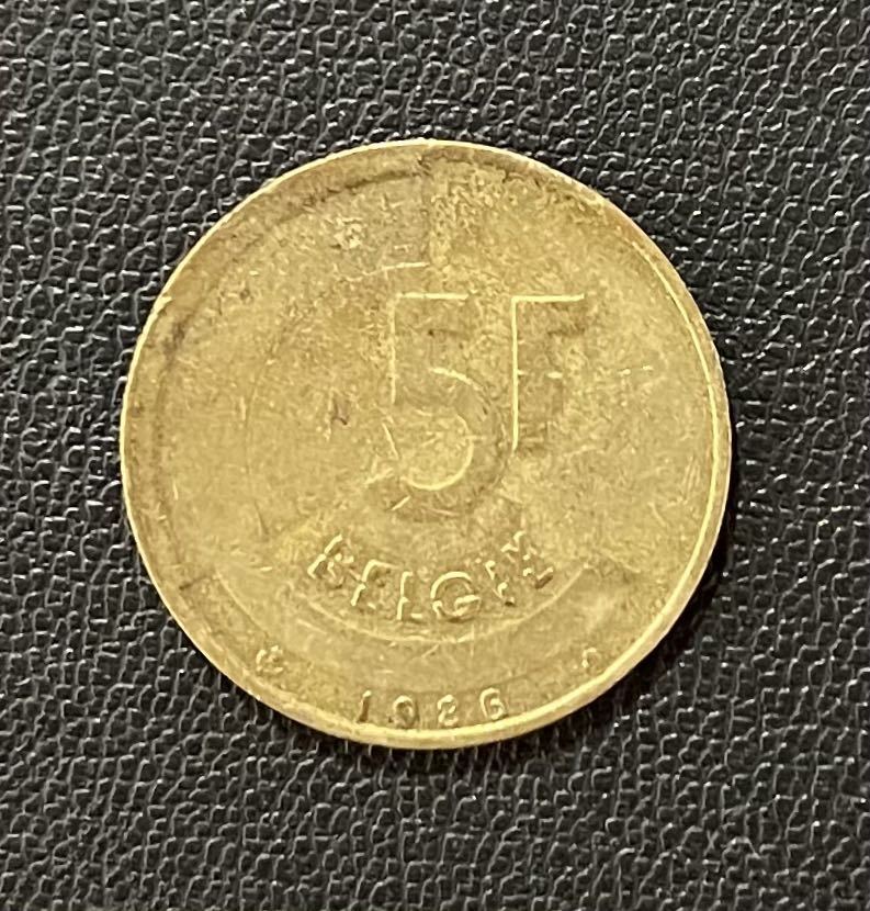 - レア 1986年 ベルギー(Belgium)5 フランコイン 外径:224mm、重さ:5.4g