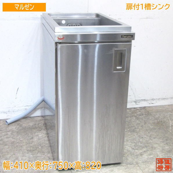 - 中古厨房 マルゼン ステンレス 扉付1槽シンク 410×750×820 業務用1層流し台 /23B0619Z
