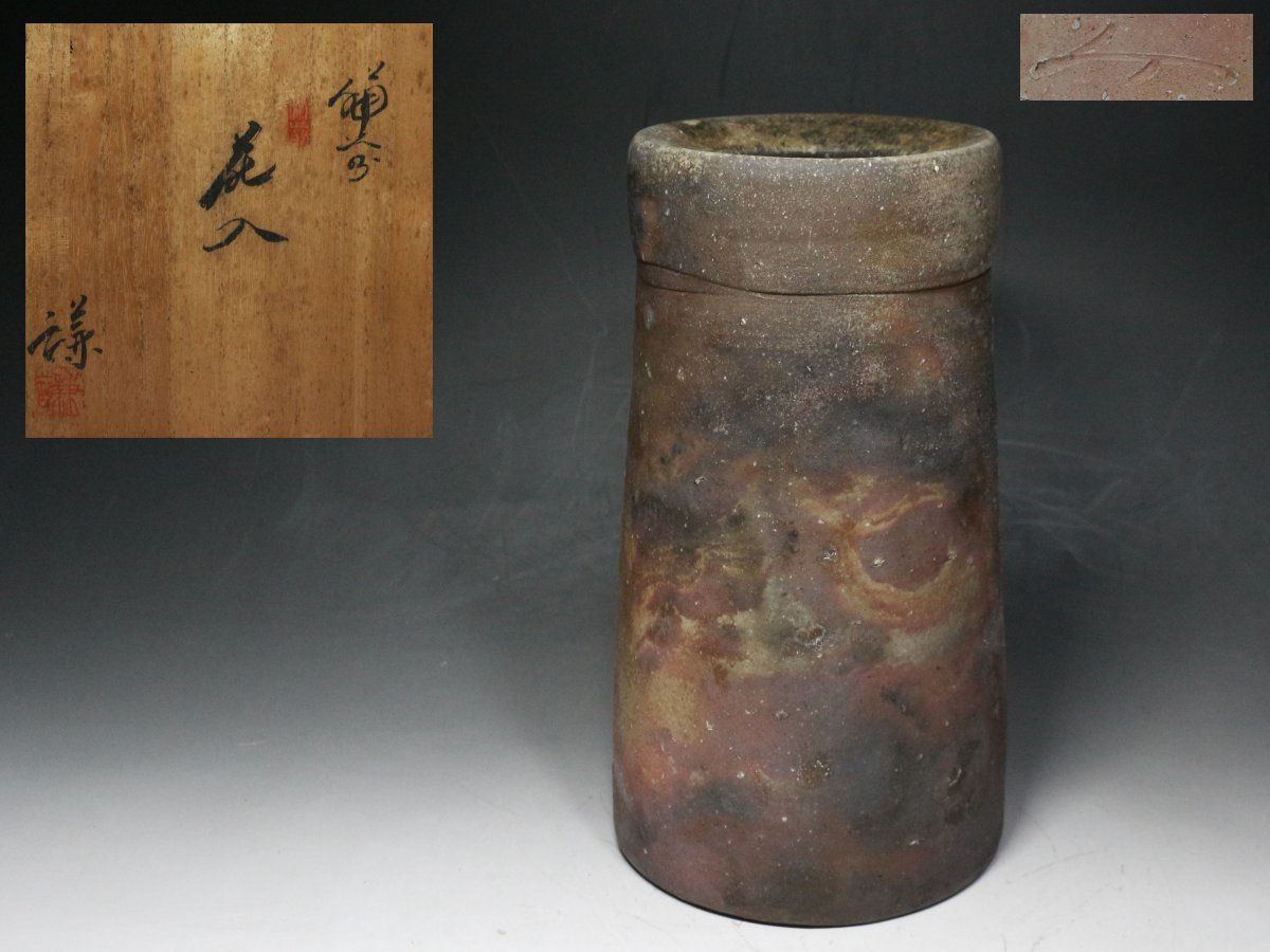 - ■備前■藤原謙・花入・花瓶・栞・共箱・検/藤原楽山・f715