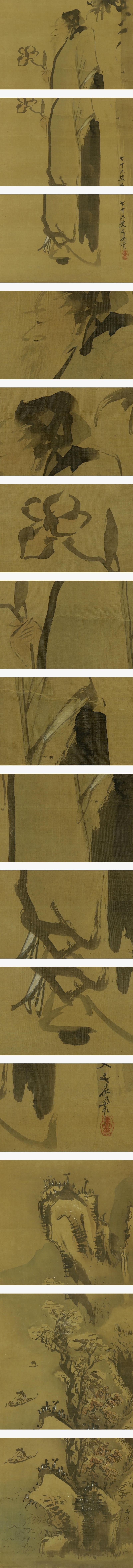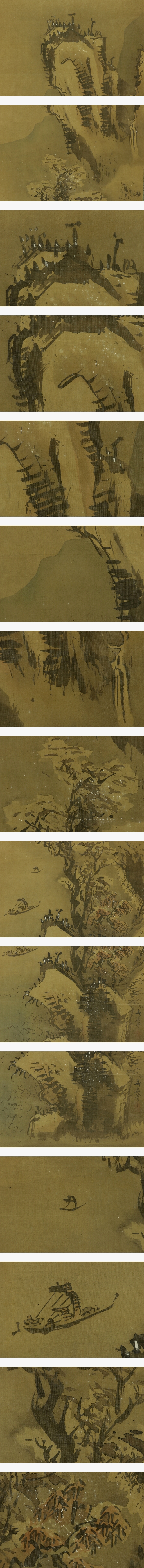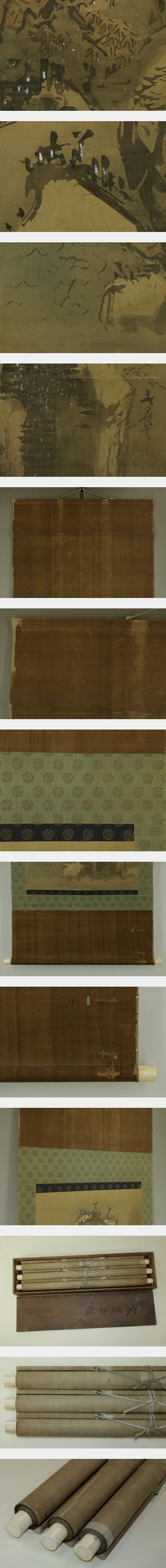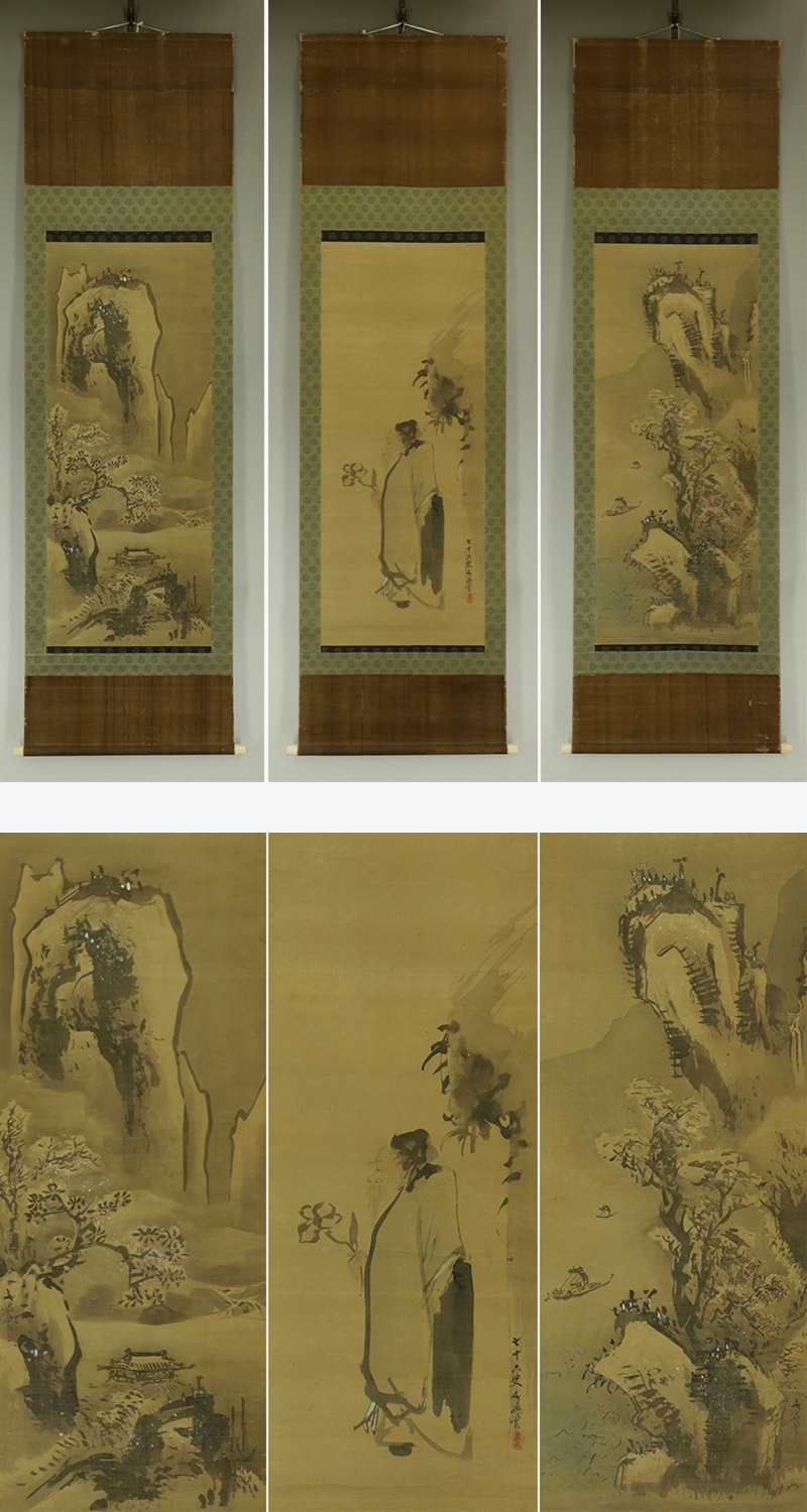 - 【真作】谷文晁【三対幅・山水賢人図】◆絹本◆合箱◆掛軸 u06074