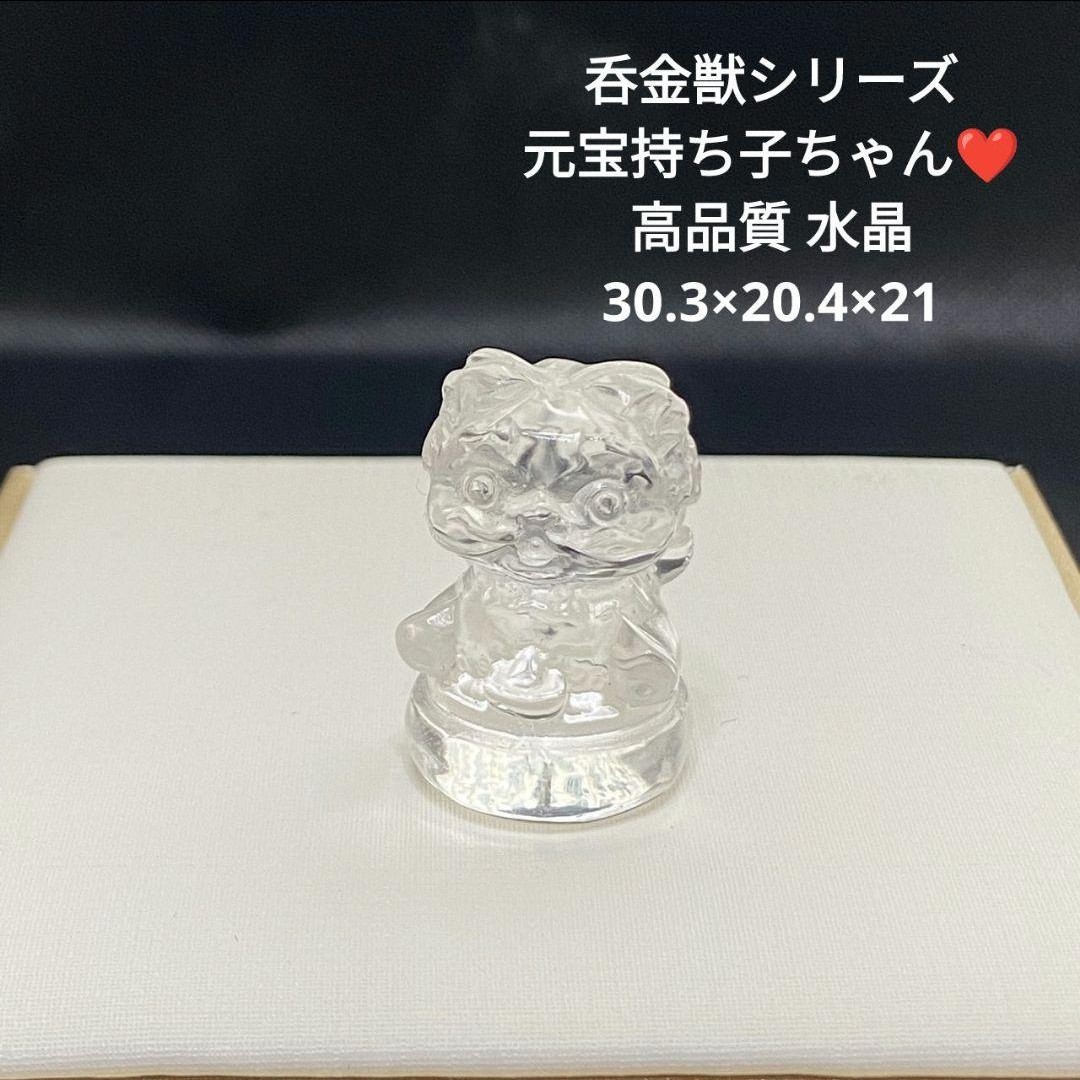- 393 呑金獣シリーズ 元宝持ち子 高品質 水晶 30.3×20.4