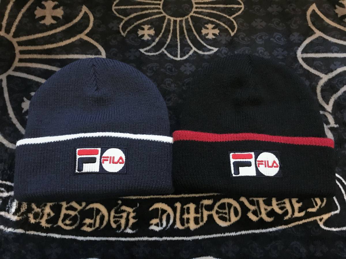 > ファッション小物 ☆ 廃番古着 ニット帽子 FILA フィラ ネイビー・ブラック フリーサイズ 色違い2枚 ユニセックス 防寒具