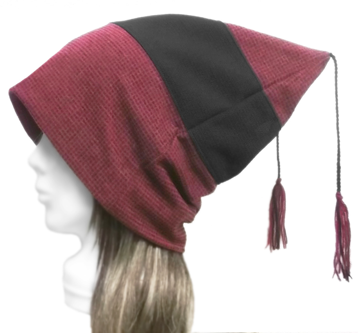 - ◇送料無料◇ ハンドメイド◆格子柄ニット(ピーチスキン加工)/スクエアワッチキャップ◆赤×黒 ◇ゆったり・小顔効果・長いシーズン着用