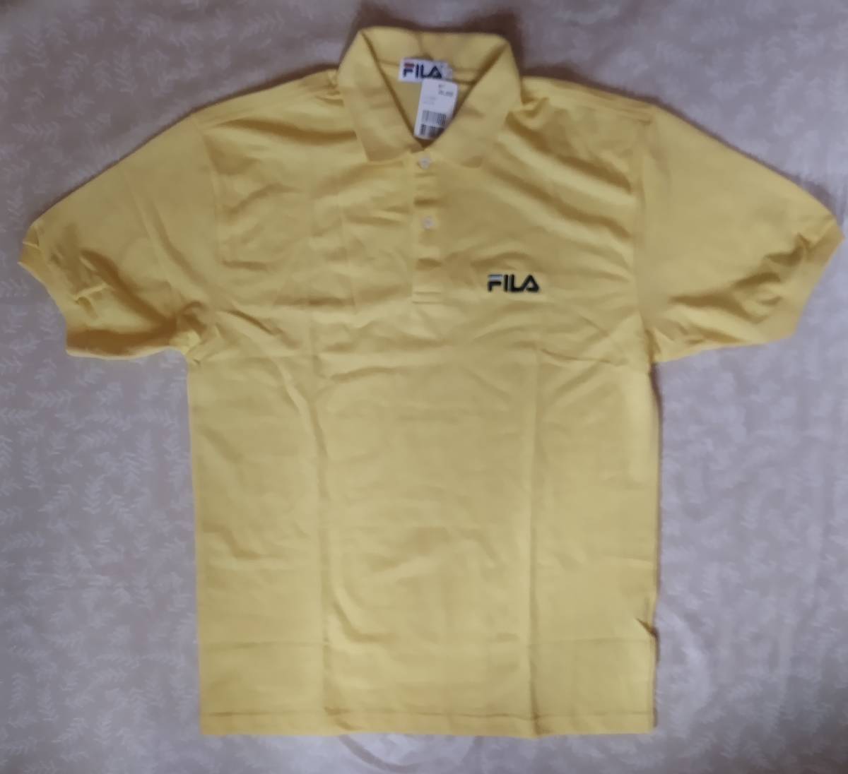 > 未使用品 フィラ FIRA 半袖シャツ サイズL イエロー 綿80% 細かいメッシュ風 しっかりしたやや薄手ドライ生地 9800円の品