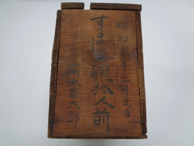 - c521-80 アンティーク 木箱 空箱 すまし腕 昭和3年 15センチ×30センチ 高さ22.5センチ 時代箱 保存箱